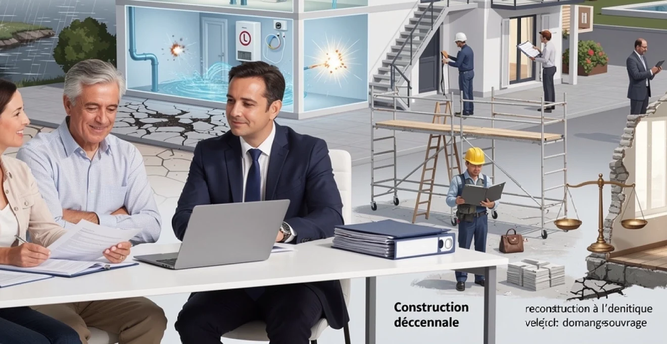 La garantie décennale oblige les constructeurs (entrepreneurs, architectes, maîtres d’œuvre, bureaux d’études) à réparer, pendant 10 ans à compter de la réception des travaux, les dommages compromettant la solidité de l’ouvrage ou le rendant impropre à sa destination. Fissures importantes, affaissement de dalle, infiltration généralisée, défaut d’étanchéité majeure entrent typiquement dans ce cadre. Chaque professionnel doit être assuré pour cette responsabilité, sous peine de lourdes sanctions.
